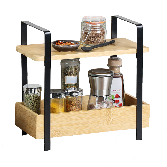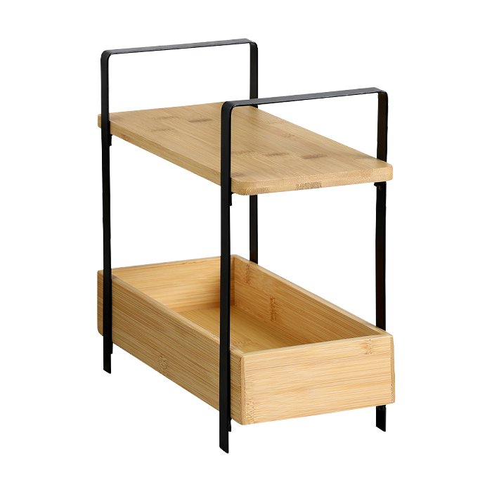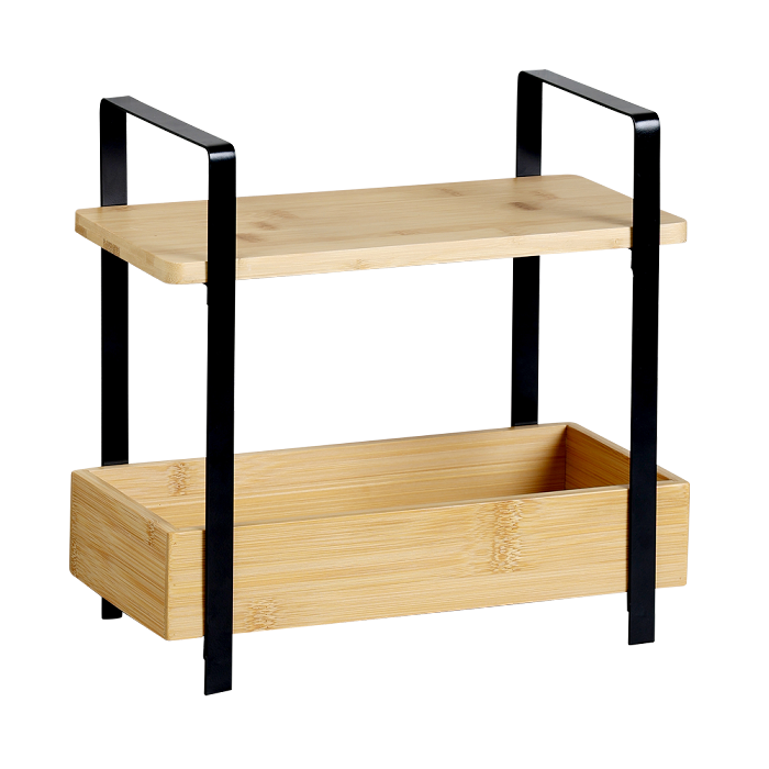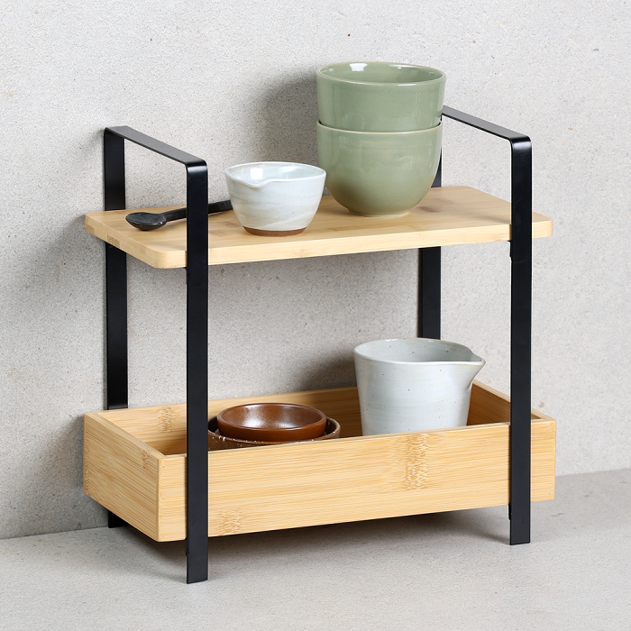 Kombination aus Bambusablagen und stabilem Metallgestell