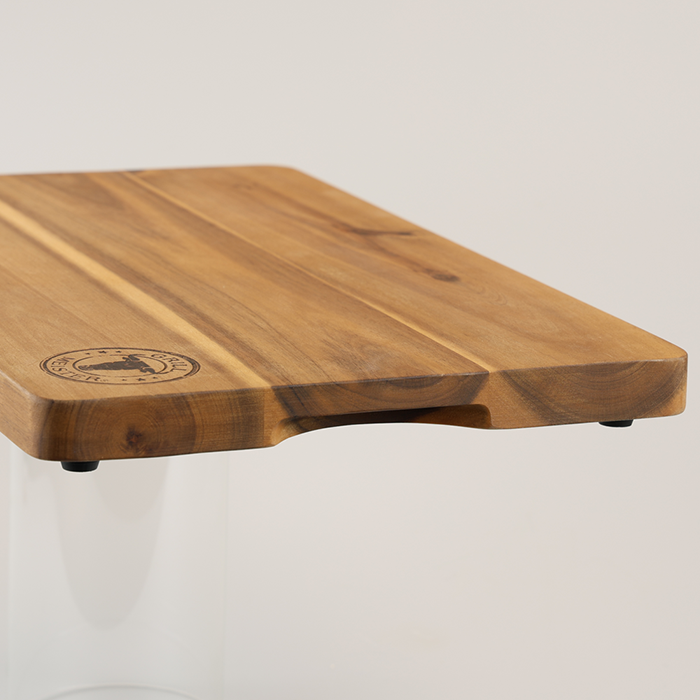 The KESPER professional cutting board made of acacia wood impresses with its solid workmanship and functional design for the kitchen and barbecue area. With a wood thickness of approx. 2.5 cm, the cutting board offers a particularly stable work surface for cutting, carving, and serving meat, vegetables, or barbecue food. Four non-slip feet ensure a secure hold during preparation. The decorative “Grillmeister” branding also makes the board a real eye-catcher at any BBQ evening. Made from FSC®-certified acacia wood (FSC® C014021), the cutting board combines a natural look with high functionality and is ideal for ambitious amateur chefs and barbecue fans.
